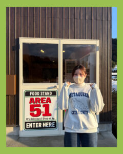 休憩時間中、当店自慢の西城土耕ねぎやジビエについてご紹介させていただきました。遠方からのお客様ということで、キムチやイノシシ肉などの冷蔵・冷凍商品は次回のお楽しみとし、今回は「西城土耕ねぎのおつまみラスク」をお土産としてお買い求めいただきました。